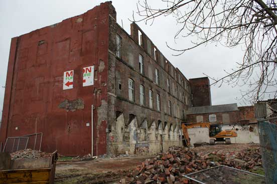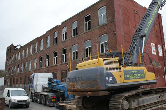 The demolition works were made more complex due to the neighbouring industrial units at one end of the mill, and a row of occupied terraced houses directly opposite.